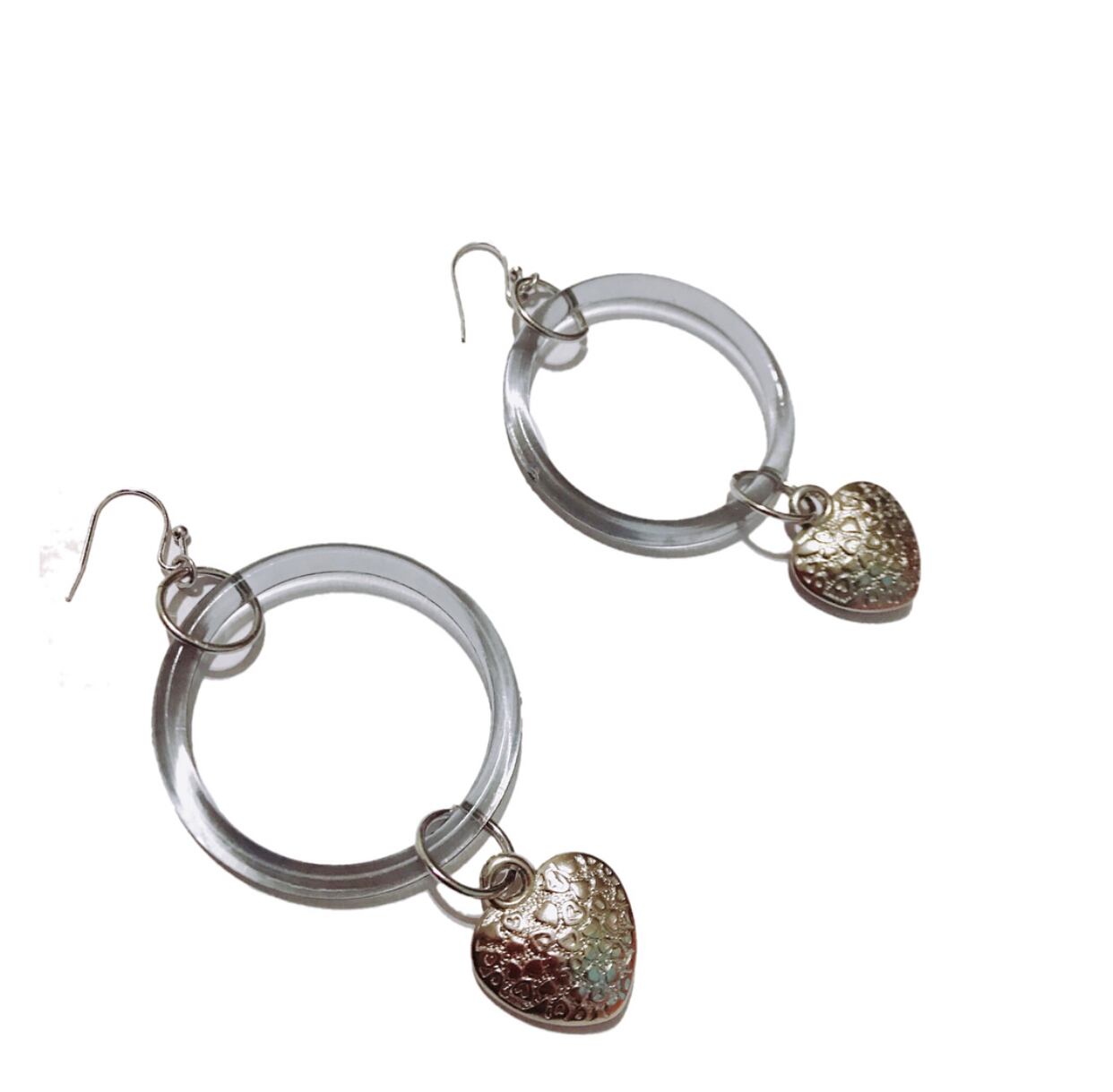 クリアとシルバーパーツのハートをゆらして